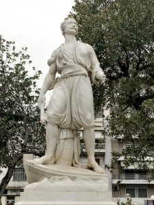 Ο Κωνσταντίνος Κανάρης γεννήθηκε στα Ψαρά το 1793 και πέθανε στην Αθήνα το 1877. Από μικρός δούλευε στα καράβια και στην εμπορική ναυτιλία, αποκτώντας πολύτιμες μεταγενέστερα γνώσεις. Τον Ιούνιο του 1822, μετά τη σφαγή της Χίου από τον στόλο του ναυάρχου Καρά Αλή, ο Κανάρης και ο Αντρέας Πιπίνος πυρπόλησαν την τουρκική ναυαρχίδα σκορπώντας τον θάνατο και παίρνοντας εκδίκηση για τον θάνατο των συμπατριωτών τους. Συνέχισε με μεγαλύτερη αποφασιστικότητα τον αγώνα, κάνοντας νέα κατορθώματα και τελικά, κατά την περίοδο διακυβέρνησης του Ιωάννη Καποδίστρια, του δόθηκαν σημαντικά αξιώματα. Η δολοφονία του κυβερνήτη και οι επάλληλοι εμφύλιοι σπαραγμοί τον οδήγησαν στην απομάκρυνση από την ενεργό ζωή ώσπου ο βασιλιάς Όθων τον διόρισε ναύαρχο και μετά την Επανάσταση του 1843 υπουργό Ναυτικών ενώ ο ακόλουθος έντονος πολιτικός του βίος τον οδήγησε στη θέση του πρωθυπουργού για τουλάχιστον πέντε φορές.