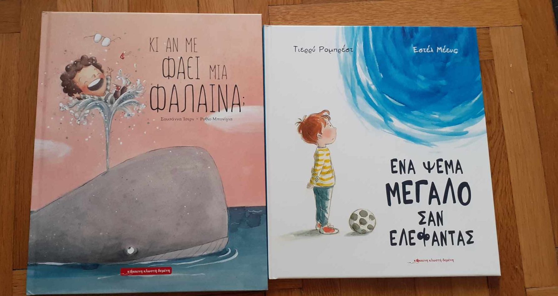 Στο «Ένα ψέμα μεγάλο σαν ελέφαντας» ο Λουκάς σπάει το τζάμι του σπιτιού του και κατηγορεί την αδελφή του, Ελεωνόρα, ότι το έκανε εκείνη, με αποτέλεσμα το κορίτσι να τιμωρηθεί από τον μπαμπά. Ο Λουκάς όμως νιώθει ένα ολοένα και μεγαλύτερο βάρος, έναν μεγάλο μπλε ελέφαντα, που δεν τον αφήνει ούτε να φάει ούτε να κοιμηθεί ούτε να παίξει. Πώς μπορεί να ξεφορτωθεί αυτό το πρόβλημα; Θα πει την αλήθεια τελικά ή θα εμμείνει στο ψέμα του; Οι Tierry Roberrecht και Estelle Meens έγραψαν και εικονογράφησαν μια συναρπαστική ιστορία που δείχνει με παραστατικότητα και ρεαλισμό πόσο άσχημο είναι να ζούμε με το ψέμα και ποιες είναι οι συνέπειές του στην ψυχοσυναισθηματική μας κατάσταση. Ο Λουκάς νιώθει τύψεις, ξαγρυπνά, δεν προσέχει στο παιχνίδι και προσπαθεί να βρει τρόπο να απαλλαγεί από τον μπλε ελέφαντα που έχει κάτσει πάνω του. Η εικονογράφηση είναι υπέροχη, με ενδιαφέρουσες λεπτομέρειες που δημιουργούν οικείο περιβάλλον στα παιδιά, μιας και το σπίτι του Λουκά και το σχολείο αποτυπώνονται με αντικείμενα και χώρους που γνωρίζουμε καλά (στην αυλή τα παιδιά παίζουν χουλα χουπ και σκοινάκι, στο μάθημα ψιθυρίζουν ή σκαλίζουν τη μύτη τους). Ο ελεφαντούλης, που ξεκινάει από μπλε συννεφάκι και μεγαλώνει σιγά σιγά, είναι για πολλά χαδάκια με το θλιμμένο του μουτράκι και οι οπτικές γωνίες των εικόνων ποικίλλουν. Το ψέμα είναι ένα ασήκωτο βάρος και το συναρπαστικό αυτό παραμύθι δείχνει με τον καλύτερο τρόπο τις συνέπειές του και πώς μπορούμε να απαλλαγούμε από αυτό.