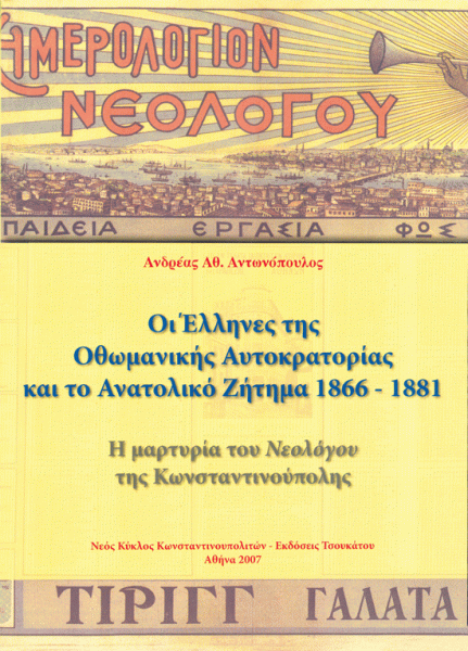Η εφημερίδα Νεολόγος της Κωνσταντινούπολης (1866-1897) υπήρξε σημαντική φωνή του ελληνισμού στην ευρύτερη περιοχή της καθ’ ημάς Ανατολής. Η ιστορική αυτή περίοδος περιλαμβάνει κρίσιμες και σοβαρές εξελίξεις στα Βαλκάνια και τη Μικρά Ασία. Το Ανατολικό Πρόβλημα διχάζει: ποια θα είναι η διάδοχος κατάσταση μετά το θάνατο του ασθενούς που ακούει στο όνομα Οθωμανική Αυτοκρατορία; Ο ελληνισμός βρίσκεται σε δίλημμα: ποια πορεία θα ακολουθήσει έχοντας σημαντικό μέρος του γένους των Ελλήνων να ζει εκτός του ελληνικού κράτους (που περιορίστηκε εδαφικά); Η μελέτη των φύλλων της εφημερίδας Νεολόγος προσφέρει πολύτιμες πληροφορίες για το ανωτέρω δίλημμα.